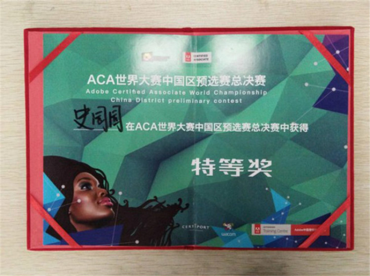 史園園是新華互聯(lián)網(wǎng)科技UI設(shè)計(jì)專業(yè)的畢業(yè)生,他在2018年ACA世界大賽中國區(qū)預(yù)選賽決賽中榮獲特等獎(jiǎng),并代表ACA世界大賽中國區(qū)優(yōu)勝者前往美國佛羅里達(dá)州ACA世界大賽決賽現(xiàn)場(chǎng)。他畢業(yè)后因出色的UI設(shè)計(jì)技術(shù)而以技術(shù)入股的方式加盟了其所在的公司。